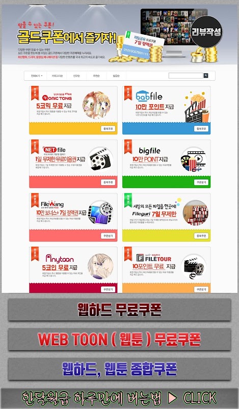 각종 웹하드(P2P) 및 유료 웹툰 무료쿠폰 모음