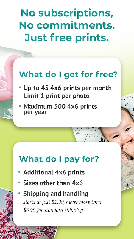 Print up to 500 4x6 photos a year for FREE! No subscriptions. No commitments.™