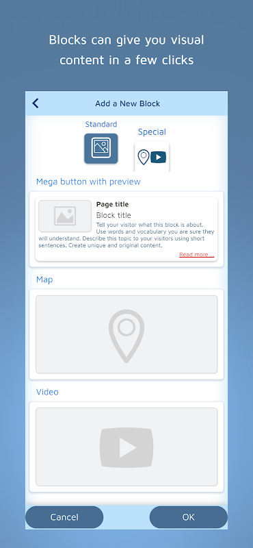 If you need more pages and features for Search Engine Optimization, E-commerce, or more control over sharing your site on Social media, just download the fully featured SimDif website builder app. You can login with the same username and password, and start editing your website knowing exactly how everything works. SimDif offers many extra features for free, and upgrades if you need them.