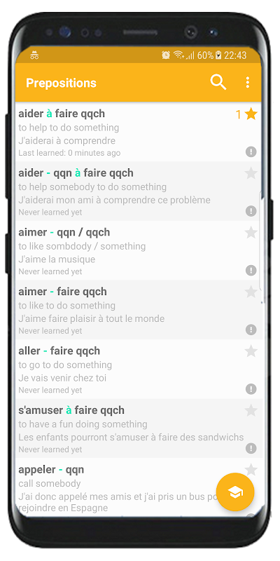 • The second purpose of this application is to help you to learn prepositions by heart. We need to repeat a lot of times to start to remember something. Our memory works like this. This language trainer will give you French prepositions lessons whenever and wherever you want. The idea is to learn this difficult subject as soon as possible.