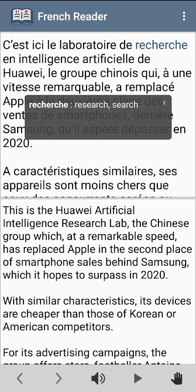 + Integrated offline French - English dictionary with an instant tap-to-translate support.