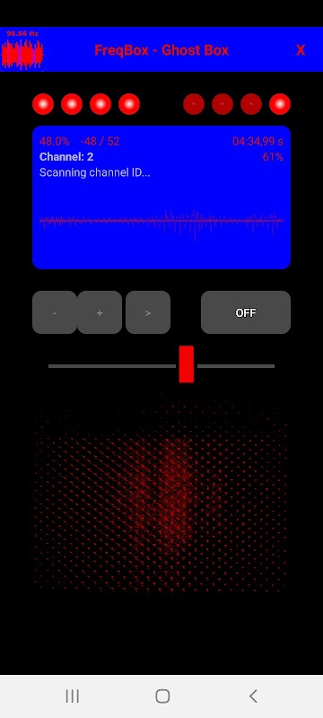 - Spirit box that generates white noise in different frequencies emulating a signal sweep of FM/AM.
