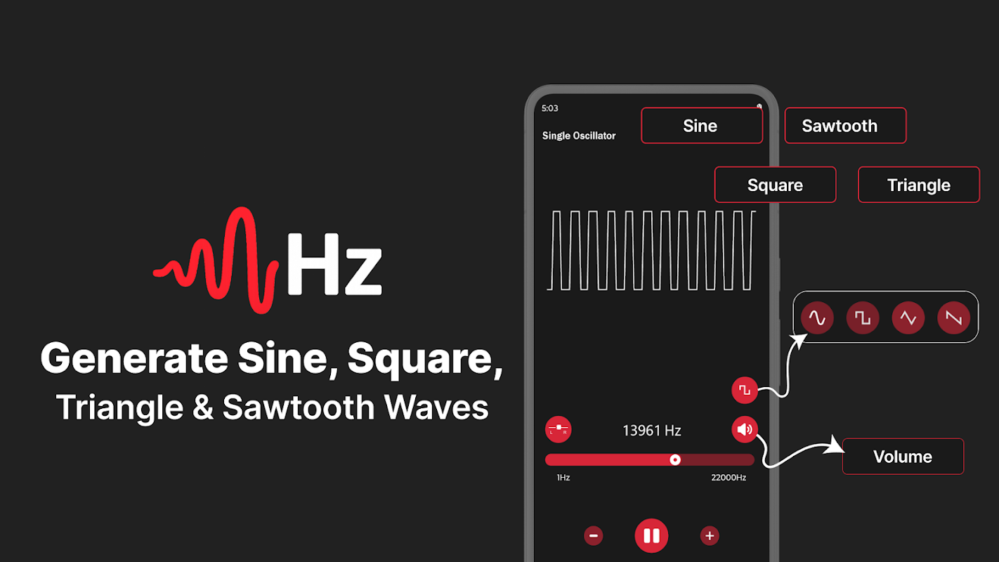 From sine, square, sawtooth, and triangle waves to advanced frequency control, this tone generator gives you the precision and flexibility you need. Use it as a hearing test tool, instrument tuner, speaker tester, or even to remove water from your phone speaker.