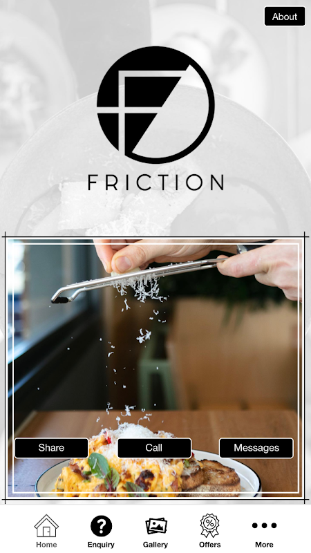 The Friction Cafe mobile App allows users the ability to order on line, access our social media pages, receive push notifications about the latest information that is happening at Friction and more.