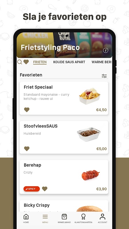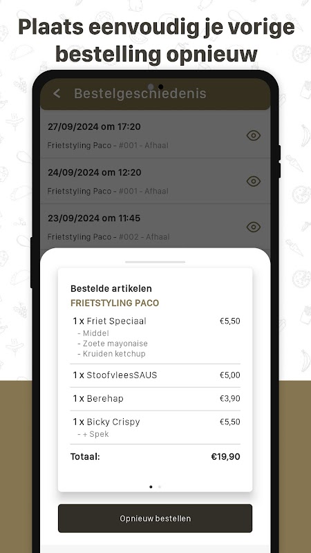 A delicious pack of fries, tasty burger or poke bowl without a long queue? Download the Frietstyling Paco app and order online.