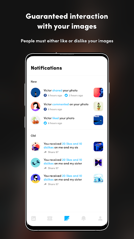 Every person that looks at your image must engage with it by liking or disliking, guaranteeing interaction with your image. They can also share and comment on your image.
