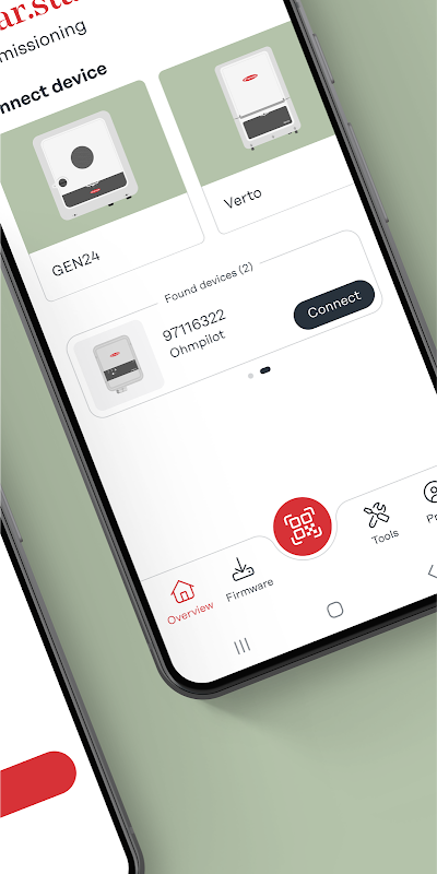 The Fronius Solar.start app helps the installer to quickly and easily set up our Fronius devices, i.e. GEN24, Verto and Tauro inverters, Smart Meter IP, Reserva, Reserva Pro or Ohmpilot by a simple QR-code scan. The device can be commissioned directly from your phone or tablet by following the step-by-step guide.