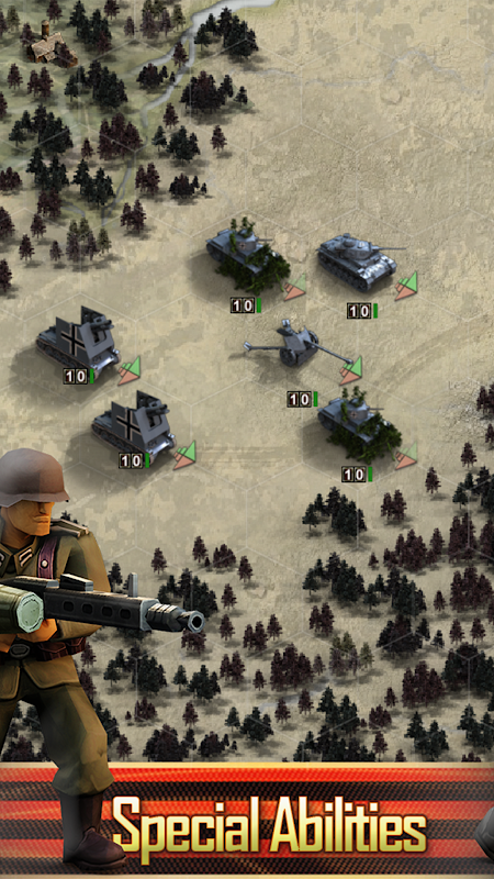 Lead your army to victory with strategic planning and precise tactics. Outsmart your opponents by using the unique features of real-life historical units, maps, countries and factions. Test your skills and strategy, as you fight through 30 historic WW2 battles. Utilize Special abilities and counter-attacks to gain the upper hand. Join the fight and prove your worth as a tactical commander!