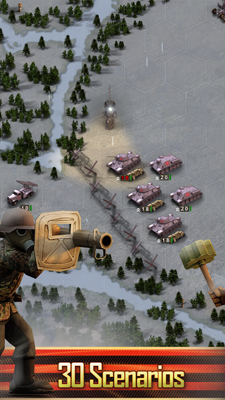 Lead your army to victory with strategic planning and precise tactics. Outsmart your opponents by using the unique features of real-life historical units, maps, countries and factions. Test your skills and strategy, as you fight through 30 historic WW2 battles. Utilize Special abilities and counter-attacks to gain the upper hand. Join the fight and prove your worth as a tactical commander!