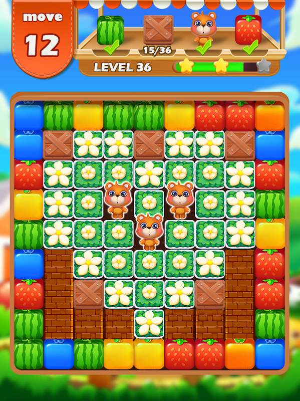 With the most fascinating Fruit candy cube puzzle you will ever solve! and tap the block in order to blast them away and complete the missions. There are countless possibilities.The more cubes you tap at one move, the better the chance you’ll unlock a cool booster that will help you defeat the obstacles.