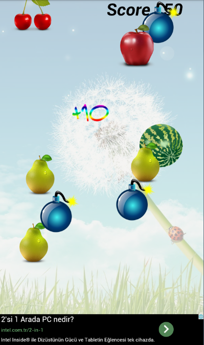 But be attention to the bomb.If you touch the bomb you will lose -50 points.