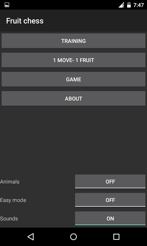 In this mode you need eat all fruits for the same number of moves (for example : 3 fruits - 3 move). If fail - level down. You can disable level down by enabling "Easy mode".