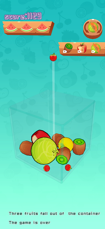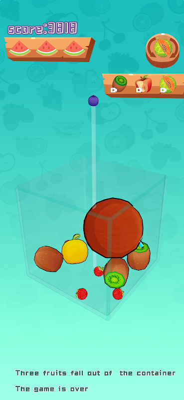The game is over when three fruits fall out of the container.