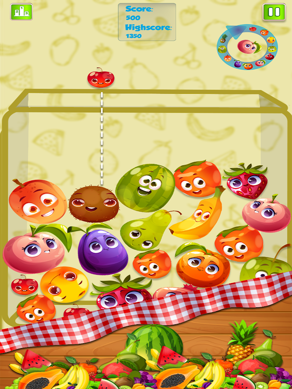 Amazing Fruit board is available. Tap the screen to drop the fruit. Use your brain and merge the same fruits to keep making it bigger. You have all fruit family of Watermelon. Start from seed and so on.