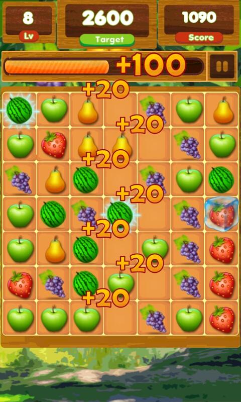 This game has a lot of combo bonus, to get it you need to connect more fruits will get a lot of bonus points and get more rounds on the same fruit.