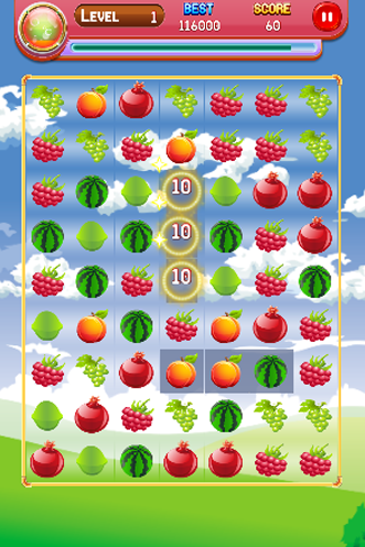 "Easy to play swipe Fruit match 3 or more Fruit by putting them on the same line!