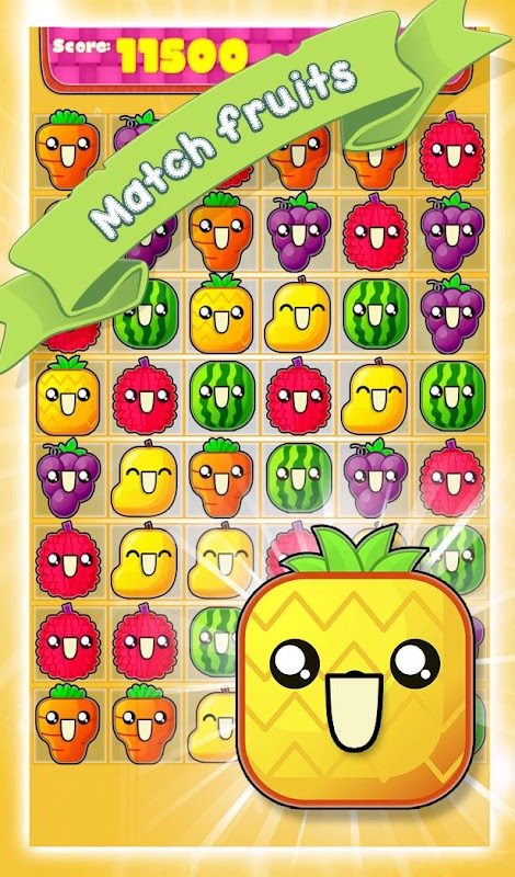 The goal is simple is just combine fruits of the same type fun match-3 puzzle, you get the explosion with three or more in sequence, no matter the direction you do horizontal, vertical, or T or L.