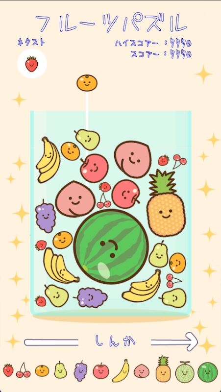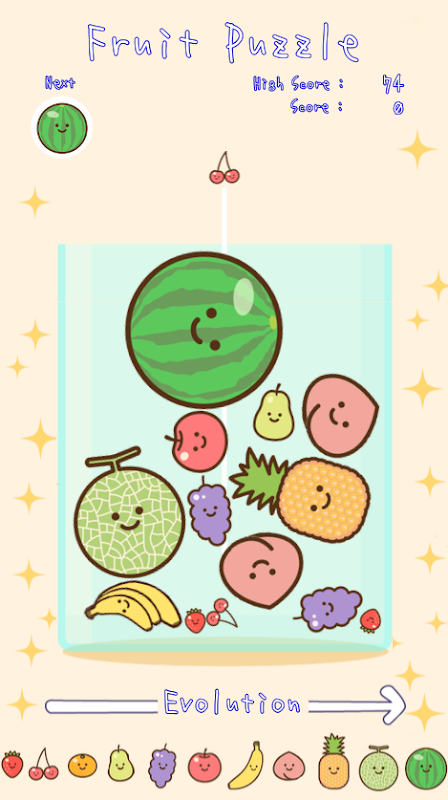 This game is a game where you drop fruits and evolve them.