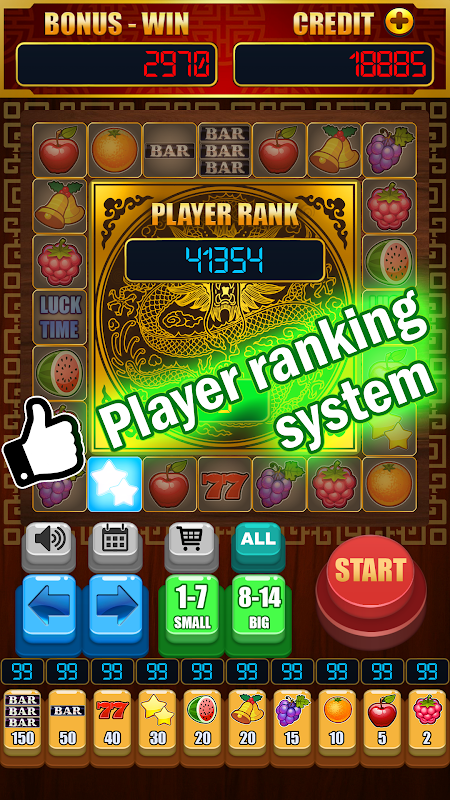 There are total 10 bet symbol items in the game. Each of them has different bonus multiple. After you bet, click the bottom “start”, then the LED light will start to run and stops at the random position, in the same time you can get the winner payout by you'd bet.
