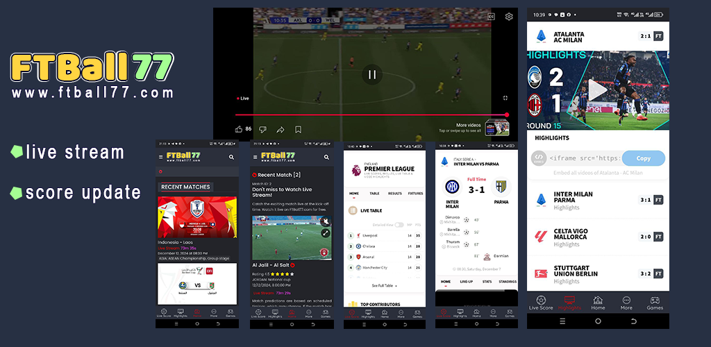 Welcome to FTBall77.com — a popolar site for live football updates, live streaming, match details, and real-time coverage of top leagues and tournaments. From live scores to high-quality video highlights and live streaming, we bring the game to you.