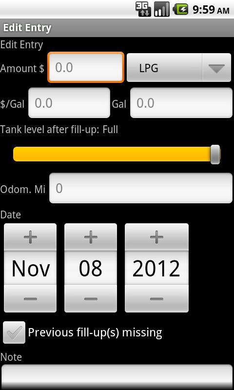 First to fully handle bi-fuel LPG, CNG, Ethanol and electric cars, with customizable Unit of Measurement and full English localization. The App can generate statistics from partial fill-ups or low fuel warning light!!