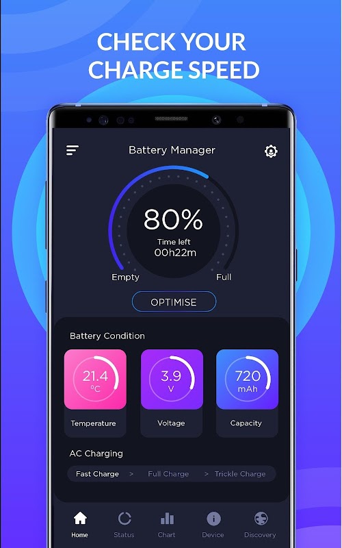 🍁 Accurate Battery Management app is a battery saver master for Android that helps extend and protect your battery life with less ram consuming. Power Management will enhance the life time of your battery, it is a ""Free Battery Check app"", fast and easy, by finding apps and settings that drain power on your device to save your battery. 🛠 This Super Battery Saver app helps cool down battery temperature and monitoring battery status. Power Management keeps your Android phone going longer, provides you with detailed battery information.