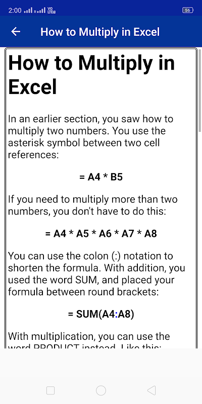 This app is just a Complete Excel Tutorial Application with lot of topics .
