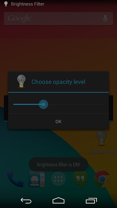 Full Screen Brightness Filter is a very simple, light weight brightness filter and contains no advertisements and no weird permissions.