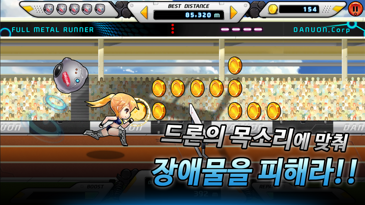 맵에 따라 바뀌는 음악의 박자와 박자에 맞춰 들리는 드론의 가이드 목소리를 듣고