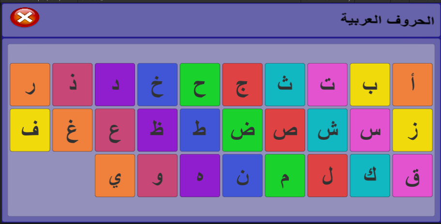 The game contains Fruits and some Arabic and English words