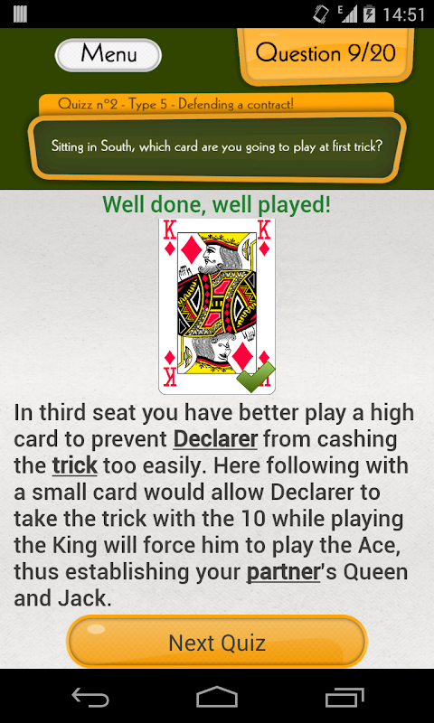 Test your knowledge with Funbridge Quiz and progress quickly !
