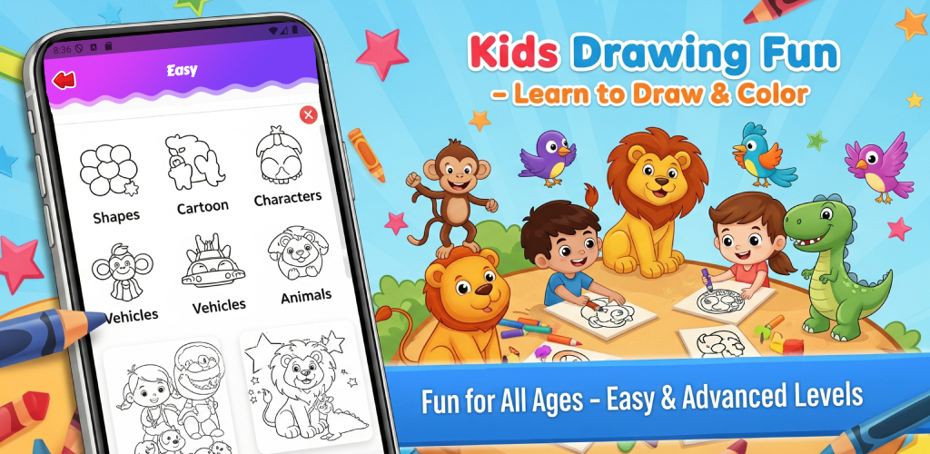 Drawing Fun: Learn Art is a creative and educational drawing app designed for users of all ages — from beginners to experienced artists. Whether you want to learn basic drawing skills or create colorful art, this app provides fun tools, step-by-step lessons, and vibrant experiences for everyone.