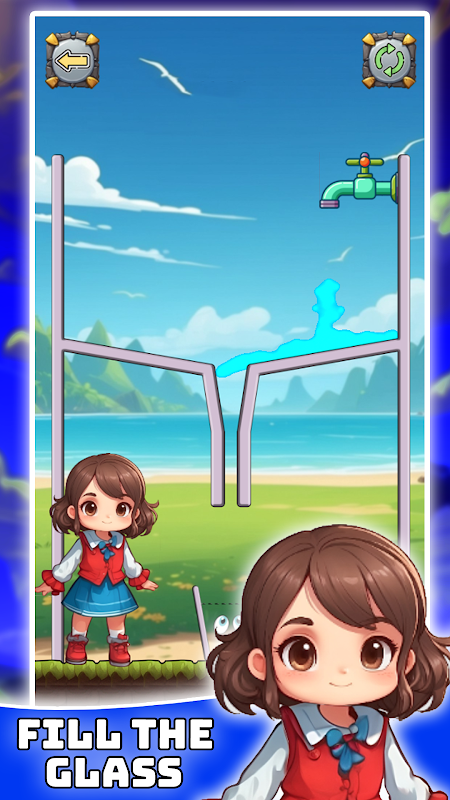 Tap on screen and fill the glass to complete the levels.