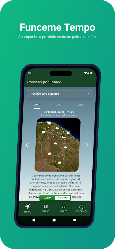 This application provides frequently updated weather information (forecasts, observations, radar and satellite images) from FUNCEME.