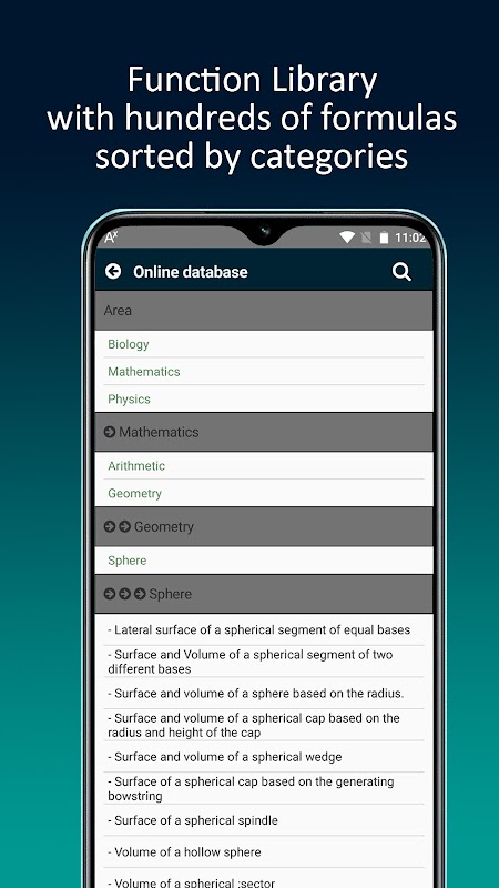 - Hundreds of predefined formulas for mathematics, physics, chemistry, economics, and much more.