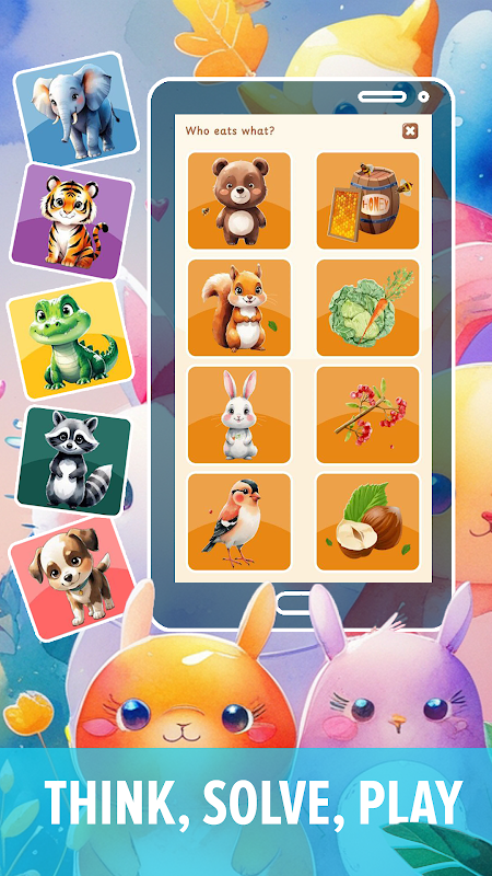 "Funny Animals" is a logical and educational game for toddlers that helps develop attention, memory, and thinking skills. Your child will match pairs of animal cards and learn: