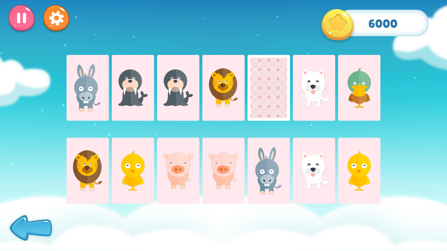Train the memory of the little ones of the house with this cards game in which they will have to find pairs of nice animals.