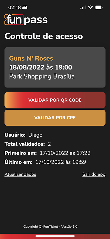 Application used by FunPass employees to validate tickets for events organized by FunPass.