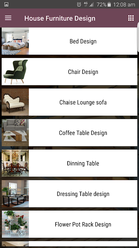 In this app, we collected of trending and beautiful Furniture Design with categories such as Ceramic Bed Design, Chair Design, Chaise Lounge Sofa, Coffee Table, Dining Table, Flower Pot Rack Design, Iron Bed Design, Iron Furniture, Modern Sofa Design, Office Furniture Design, Outdoor Furniture, Pallet Furniture, Rattan Furniture, Shelves Ideas, Table Design, TV Shelf Design, Wooden Sofa Set and more. This app gives new ideas about home Furniture and you can select easily. This app also will be helping you with your home interior design decoration and you can make your home beautiful and style.