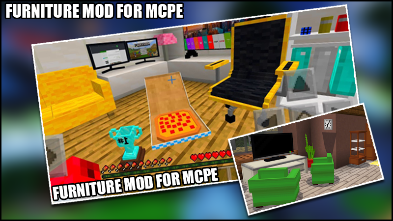 Furniture mod-Furnicraft Mod For Minecraft is an advanced furniture mod that give you the ability to install furniture such as:chairs,trampoline,table,machine,materials,Gamer PC items into your Minecraft game. With 1-Click installer, you'll be able to download and install Minecraft Mods, Addons, Maps in only 1 single tap!