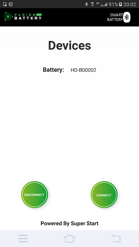 Connect the Fusion battery pack via Bluetooth to display battery information