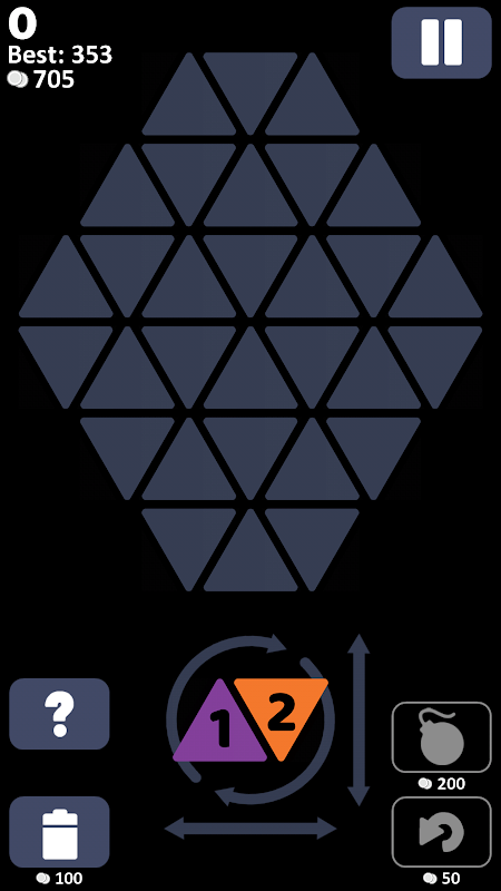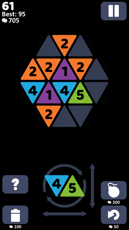 - Explode a triangle cell on the game board, to clear it and its nearby cells - costs 200 coins