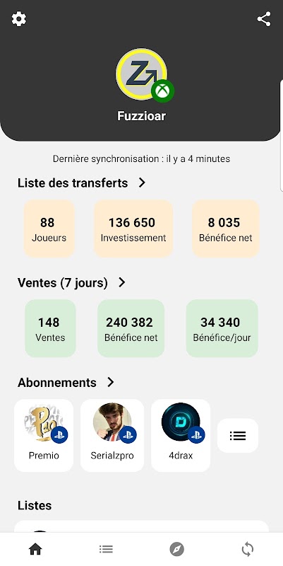 Vous faites de l’achat revente sur Ultimate Team et souhaiteriez avoir des informations sur vos achats, ventes et bénéfices ? Cette application permet de récupérer automatiquement toutes ces informations sur votre liste des transferts.