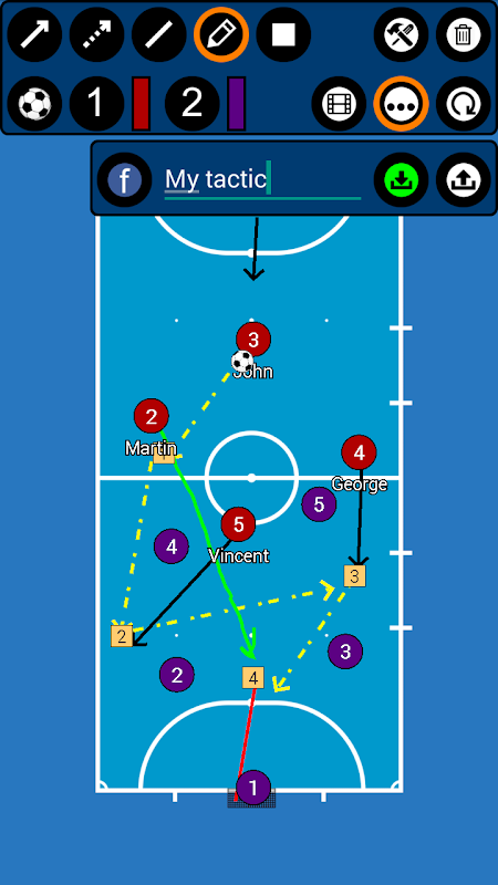 Futsal Tactic Board, allows you to create your own tactics for every match situation, for FREE and NO REGISTRATIONS nor payments are needed for more advanced tools ;). Intuitive UI, simple, quick using.