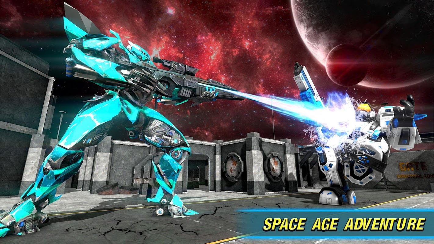 The futuristic battle has begun in our top game of the week: Futuristic Robot Wars - Mechwarrior Transformation Space Shooter Game. Car Transformation is done and dusted, time to enjoy space robot spaceship transformation with thrilling space war between real robots in real robot games. The space arena is yours to conquer with your US police futuristic robots having the ability of robot transformation. Become the space hero with robot spaceship that everyone is waiting for in spaceship robot game or space robot games. You will be attached by evils robots in outer space games and as a space shooting games champion it is your duty to overcome all challenges of space fighter games & real robot games with futuristic robots.