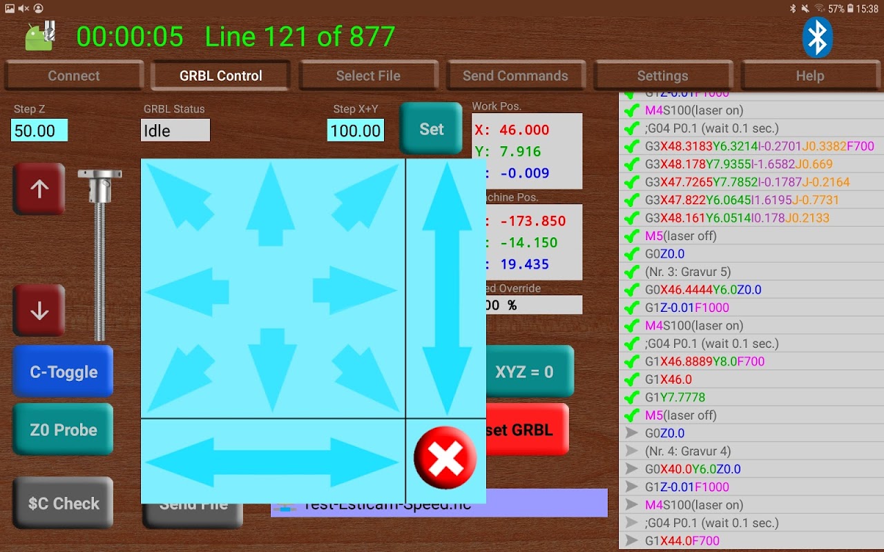 This App connects your tablet via Bluetooth with your CNC controlled by GRBL.