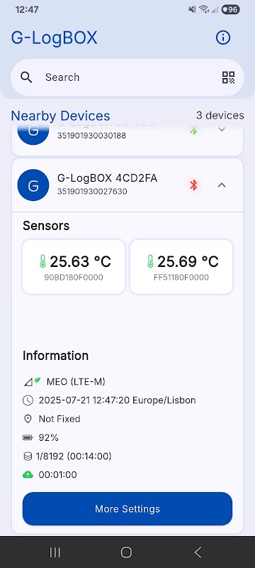 G-LogBOX App allow set up new G-LogBOX devices over Bluetooth.