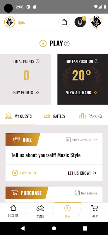 Express your fandom in the G2 App shop. Use points to order your favorite G2 Esports products. Top fans can unlock exclusive limited edition merch.