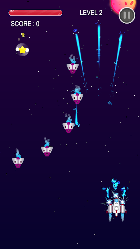 - Touch and move to control your spaceship dodge enemy's bullets and attack the enemies.