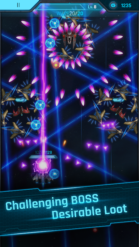 - Various Weapons: A spaceship can carry up to seven weapons and five defense gears. You do have a chance to customize your invincible aircraft with various weapons!